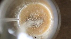 4. 将蜜瓜泥均匀地铺在巧克力酱上。